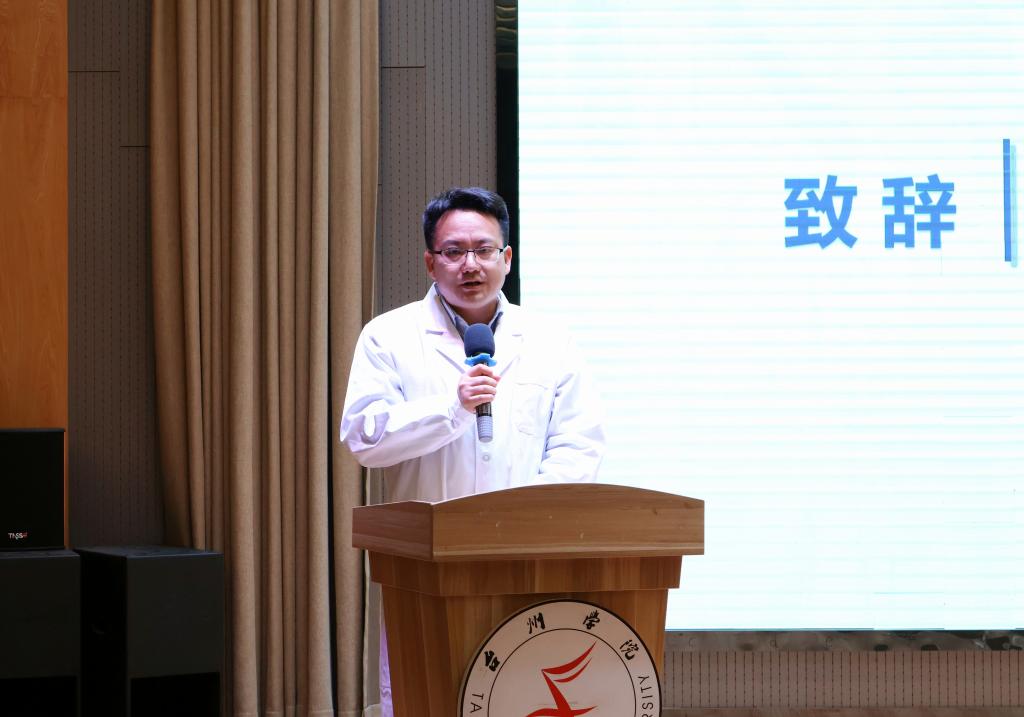 仪式在庄重、温馨的氛围中拉开帷幕。曹轩致辞,他以深情有力的语言,阐释了白大褂所承载的使命与担当。他指出,白大褂不仅是医学职业的鲜明标志,更象征着医者仁心与责任传承。曹轩强调,职业宣誓是“灵魂深处对生命的郑重承诺”,这一誓言跨越时空,赓续着希波克拉底与南丁格尔的精神火种。他勉励全体新生永葆敬畏之心——敬畏生命、敬畏职责、敬畏规矩,不负白衣荣光,坚守医学初心。