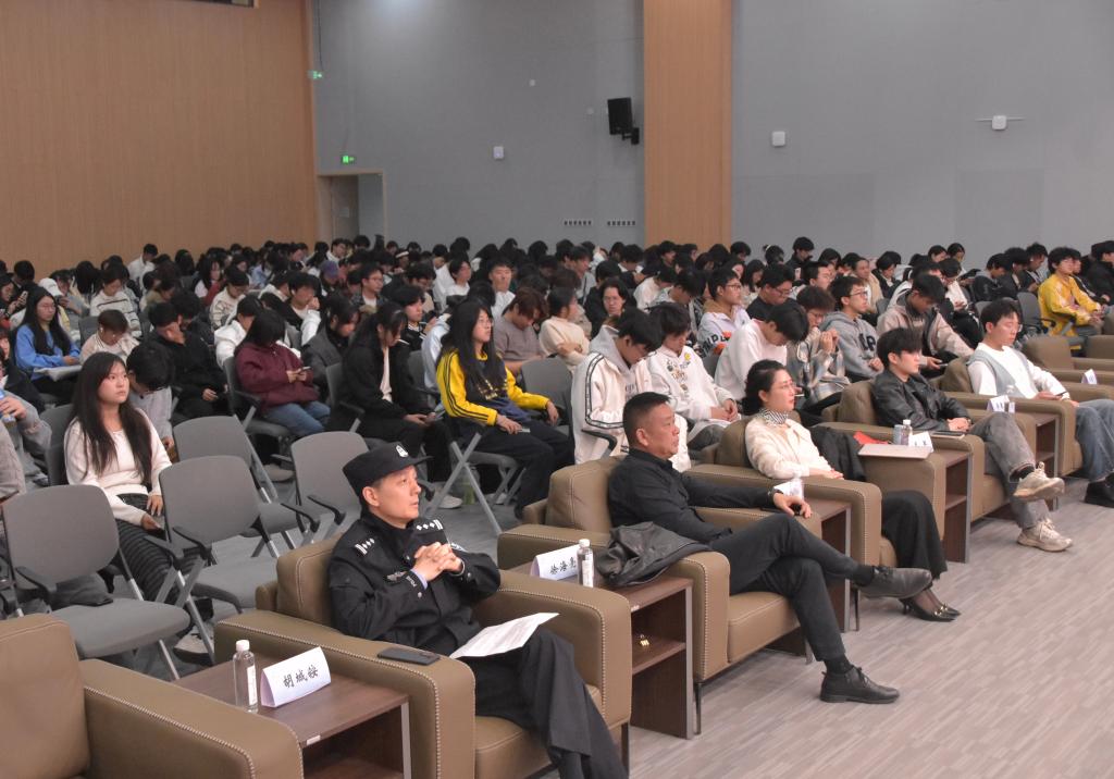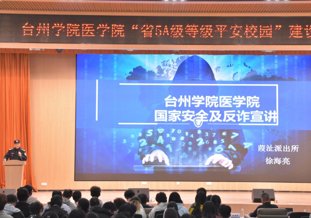 为夯实平安校园建设基础、织密校园安全防护网络、强化学生安全责任意识,11月23日晚,医学院在科技综合楼328报告厅举行了“省5A级等级平安校园”建设学生动员大会。医学院党委书记林海斌、副书记周敏,椒江区公安分局葭沚派出所民警徐海亮,驻台州学院专职民警胡城铵,校安全保卫部办公室副主任叶挺婷,校学生工作部李凌及学院全体辅导员出席会议。大会以“理论+案例+指引”的多维宣讲模式,凝聚起师生共建平安校园的强大合力。