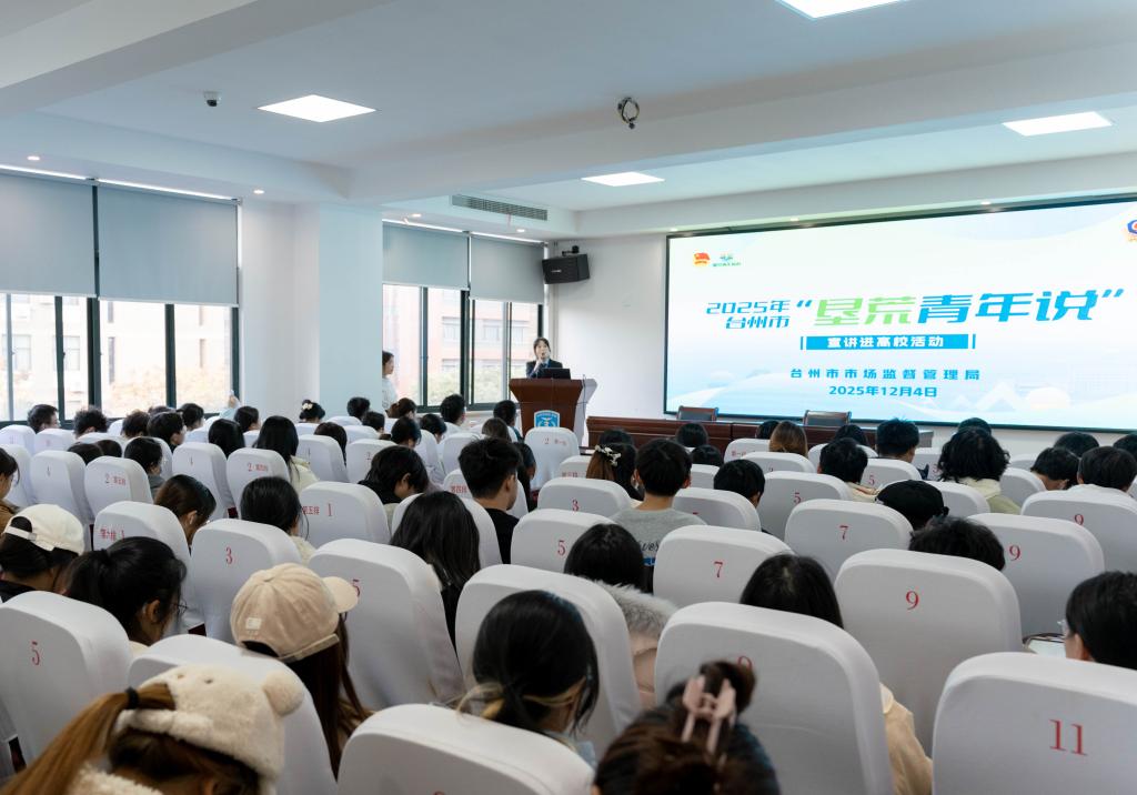 为引导青年学子传承垦荒精神、明晰职业航向,搭建理论学习与实践探索的桥梁,12月4日,2025年台州市“垦荒青年说”宣讲进高校活动在台州学院医学院437室成功举办。本次活动由台州学院医学院与药学院联合主办,特邀台州市市场监督管理局药品检查中心省级药品检查员陈江辉、台州市食品药品检验研究院科研人员鲍冕、台州市市场监督管理局办公室干部陶佳音、椒江区市场监督管理局干部万祖馨及2023年台州市选调生邱禹迪五位优秀青年代表担任宣讲嘉宾,分享实践经验。医学院、药学院百余名学子代表齐聚现场,共赴这场青春与成长的分享之约。