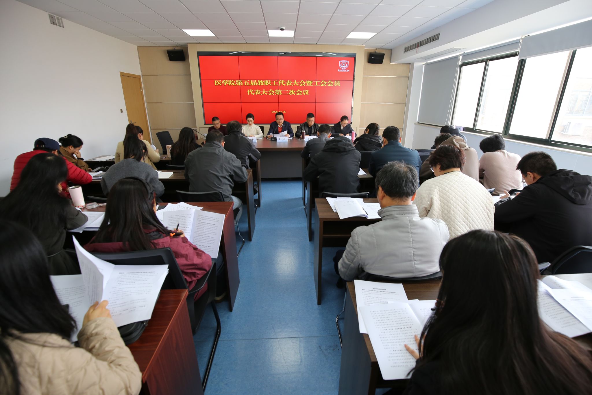 12月25日,医学院五届二次教职工代表大会暨工会会员代表大会在A442会议室召开。学院党政领导班子、正式代表共34人参会。