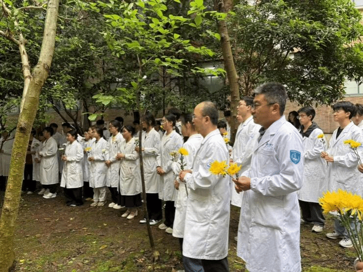 4月22日,医学院2024级临床医学专业学生与机能学实验中心教师,在实验动物纪念碑前整齐肃立,通过诵读感恩诗文、向纪念碑敬礼、敬献鲜花等形式,向为医学教学与科研奉献生命的实验动物,致以最崇高的敬意。
