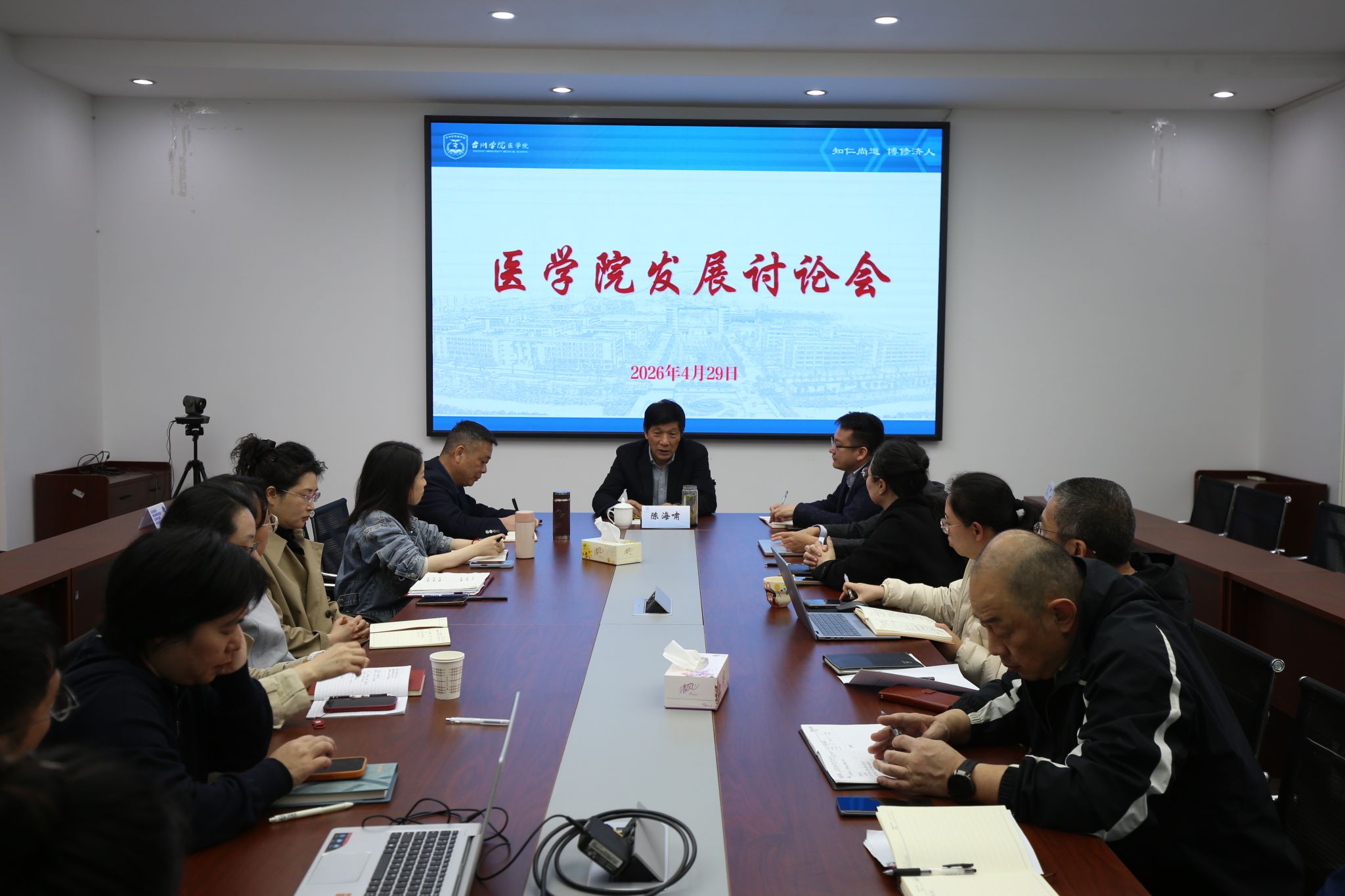 4月29日,医学院召开学院发展大讨论会议,聚焦专业建设、教学科研、医教融合、就业提质等重点工作,深入分析发展瓶颈、共谋破题思路。校医学部主任陈海啸、医学院党政领导班子、各系部(办)主任参会。