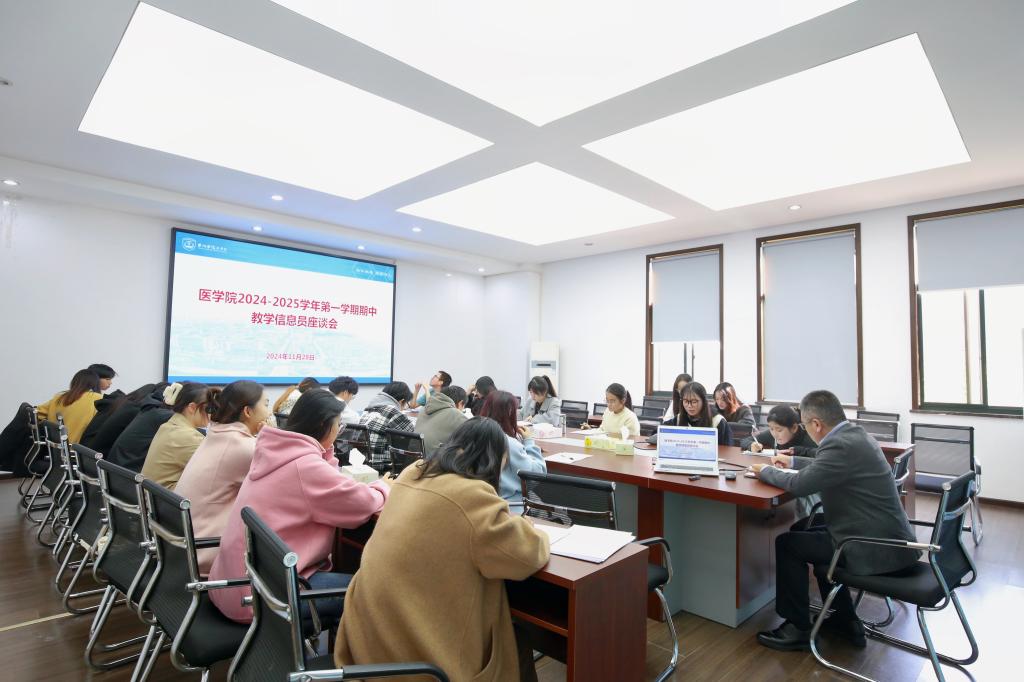 为进一步强化教学质量监控,全面了解教学课堂和学生学习要求,11月28日下午,医学院在A305会议室召开2024-2025学年第一学期期中教学信息员座谈会,学院副院长陈光、教务办老师及各班教学信息员参加了本次座谈会,会议由教学秘书赵利利主持。